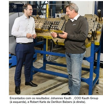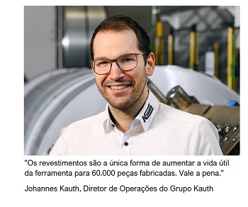 Quando uma ferramenta é submetida a esforços tão elevados, mesmo o uso extensivo de óleo lubrificante não a protegerá contra os danos. “Depois de algumas centenas de pancadas, o desgaste torna-se extremo, por isso trabalhamos apenas com ferramentas revestidas”, explica Tobias Wenzel, chefe de manutenção de ferramentas. Para este fim, a Kauth trabalha ao lado do seu parceiro de revestimentos Oerlikon Balzers há mais de dez anos.