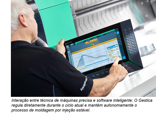 O controlador Gestica foi construído para satisfazer os mais variados requisitos de todos os sectores do processamento de plástico. As numerosas funções de assistência oferecem um elevado conforto e um apoio extenso durante o ajuste e a operação.