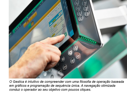 Tudo isto contribui para um trabalho ainda mais rápido e seguro. O configurador e o operador alcançam o objetivo mais rapidamente e com menos cliques. Além disso, o Gestica está "digitally ready". Através da sua conectividade baseada em OPC-UA, o controlador permite a gestão remota de células de produção completas e possibilita a comunicação fácil com sistemas de nível superior.