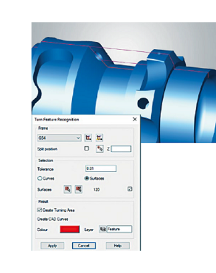 Os dois novos tipos de recursos “Turning Generic Feature” e “Turning Plunging” tornam os processos de torneamento da programação muito mais fáceis e rápidos. As áreas componentes para tornear ou "plunging" são reconhecidas e estruturadas de forma fiável e apresentadas na tabela de características.