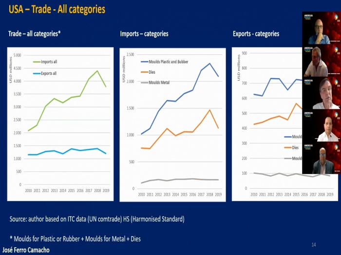 “Não esperem pelas oportunidades: vão procurá-las; desenvolvam as vossas competências, melhorem o que for possível e, acima de tudo, acreditem nas vossas capacidades”. Esta foi a principal mensagem deixada por Bob Williamson, presidente da International Special Tooling and Machining Association (ISTMA) aos fabricantes de moldes do continente americano, em particular, mas também a todos os que, pelo mundo, se dedicam a esta atividade. O responsável falava no encerramento do webinar ‘Americas: Statistics & Trends’ que, organizado pela ISTMA, decorreu no dia 9 de dezembro, contando com uma assistência ‘virtual’ composta por mais de 80 profissionais do sector, oriundos de vários pontos do globo, desde Portugal até ao Japão. Na sessão, José Camacho, orador convidado, apresentou os dados económicos de quatro países do continente americano que se fizeram representar no debate através das suas associações: Estados Unidos (NTMA), Brasil (ABINFER), Canadá (CTMA) e México (AMMMT).