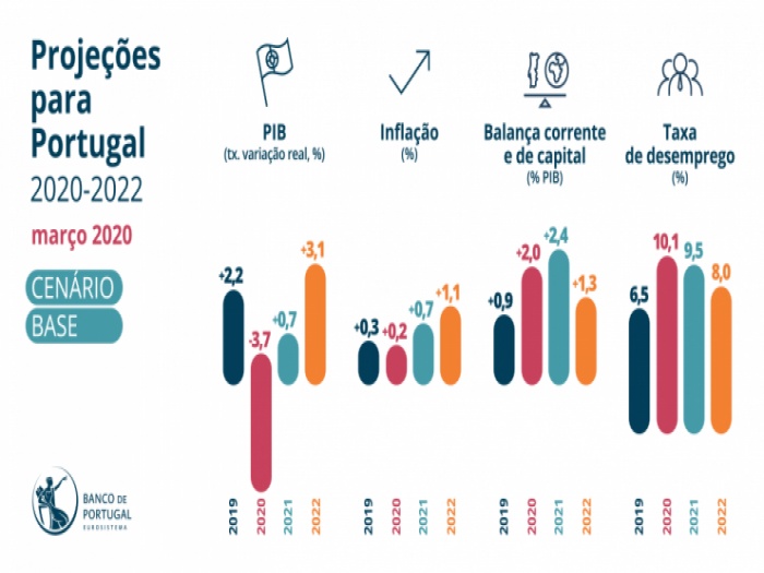 Foi hoje publicado, pelo Banco de Portugal (BdP), o Boletim Económico de março de 2020, que atualiza as projeções para a economia portuguesa relativas ao período 2020-2022.